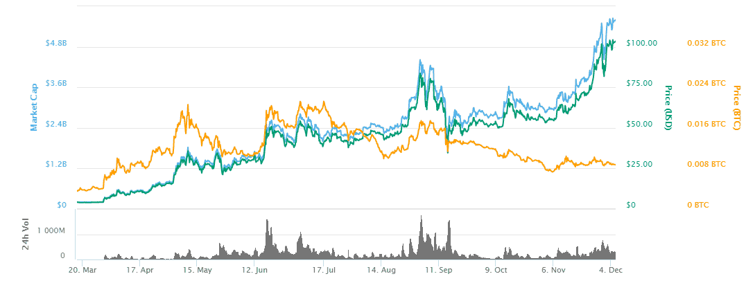 Was ist der Haken hier? Werfen Sie einen Blick auf das folgende Litecoin-Diagramm, das die Performance von März bis Dezember 2017 zeigt: