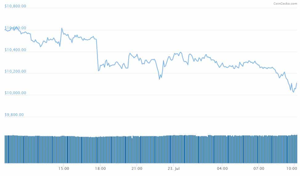 At the time of this writing, BTC is trading at around $10,130 and possesses a total market cap of around $179 billion.Â