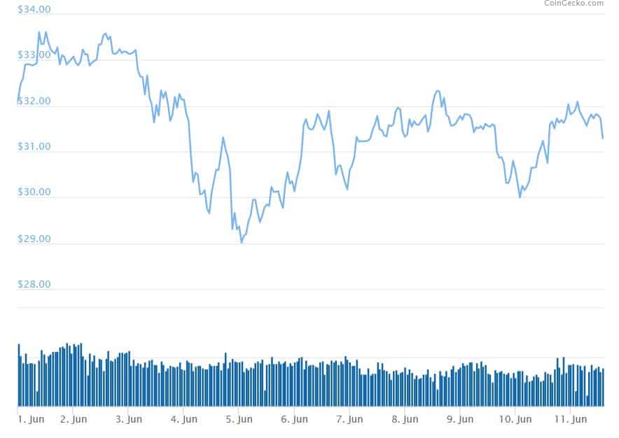 Litecoin is also a very interesting altcoin to watch out for during this month. As Cryptopotato reported, Litecoin’s halving is just about 55 days away from now. This is a landmark moment in the network’s cycle as the block reward and the overall supply of LTC on the market will be slashed in half. As seen on the chart, LTC has had a great month in June so far. It’s up more than 13 percent. Its year-to-date performance is even better, as the cryptocurrency surged more than 330% against the USD. With such a major event coming in relatively soon, it’s definitely exciting to see what’s going to happen.