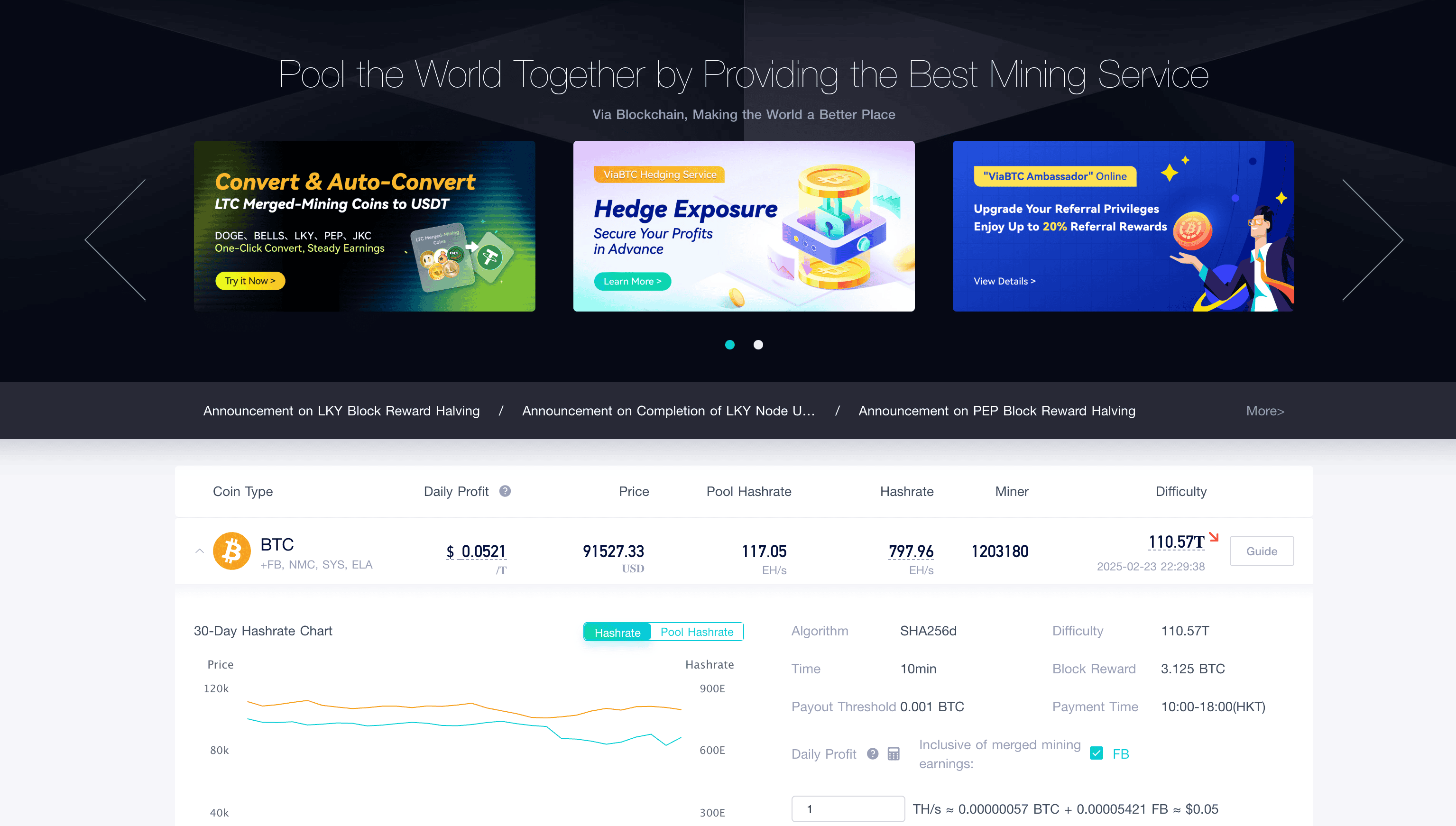 - Auto-conversion: Miners are not required to manually trade their BTC earnings as the pool can automatically convert their profits.