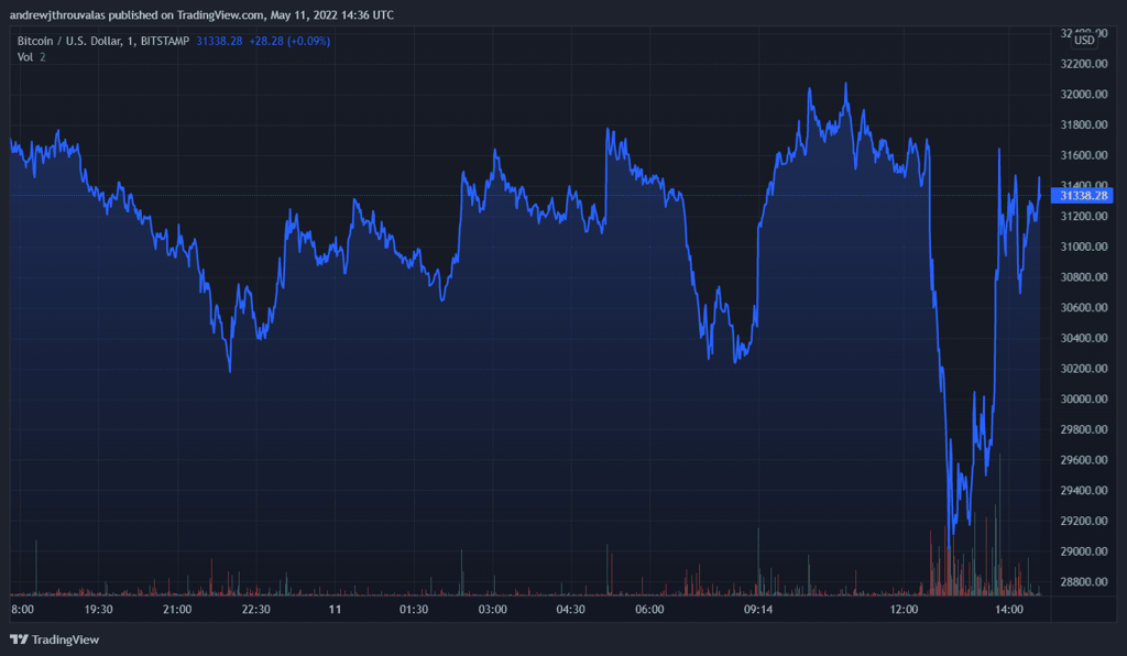 Bitcoin’s price went erratic in response to the bureau’s update. Upon release, the cryptocurrency’s value collapsed from roughly $31,700 down to $29,000 within 20 minutes. It then rebounded back to $31,600 by 13:50 UST, and has since settled at $31,300 at the time of writing.