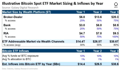 However, others are going further. A new report from Galaxy Research states that Bitcoin ETFs could see a minimum of $14B in inflows in year one, which could lead to at least 75% in price appreciation for BTC in the year following the approval.