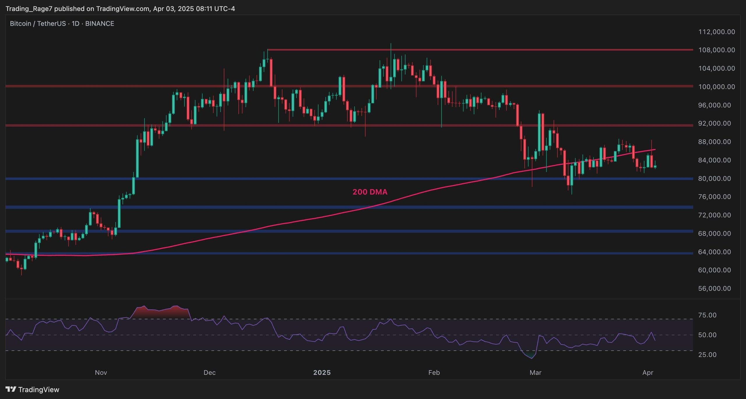 The RSI has also pulled back below the midline after failing to break above 60, showing a lack of strong momentum. Buyers need to see a confirmed daily close above $88,000 to invalidate the recent lower highs and reattempt the $92,000 level. On the downside, any clean break below $80,000 may open the path toward $74,000 and even $68,000.