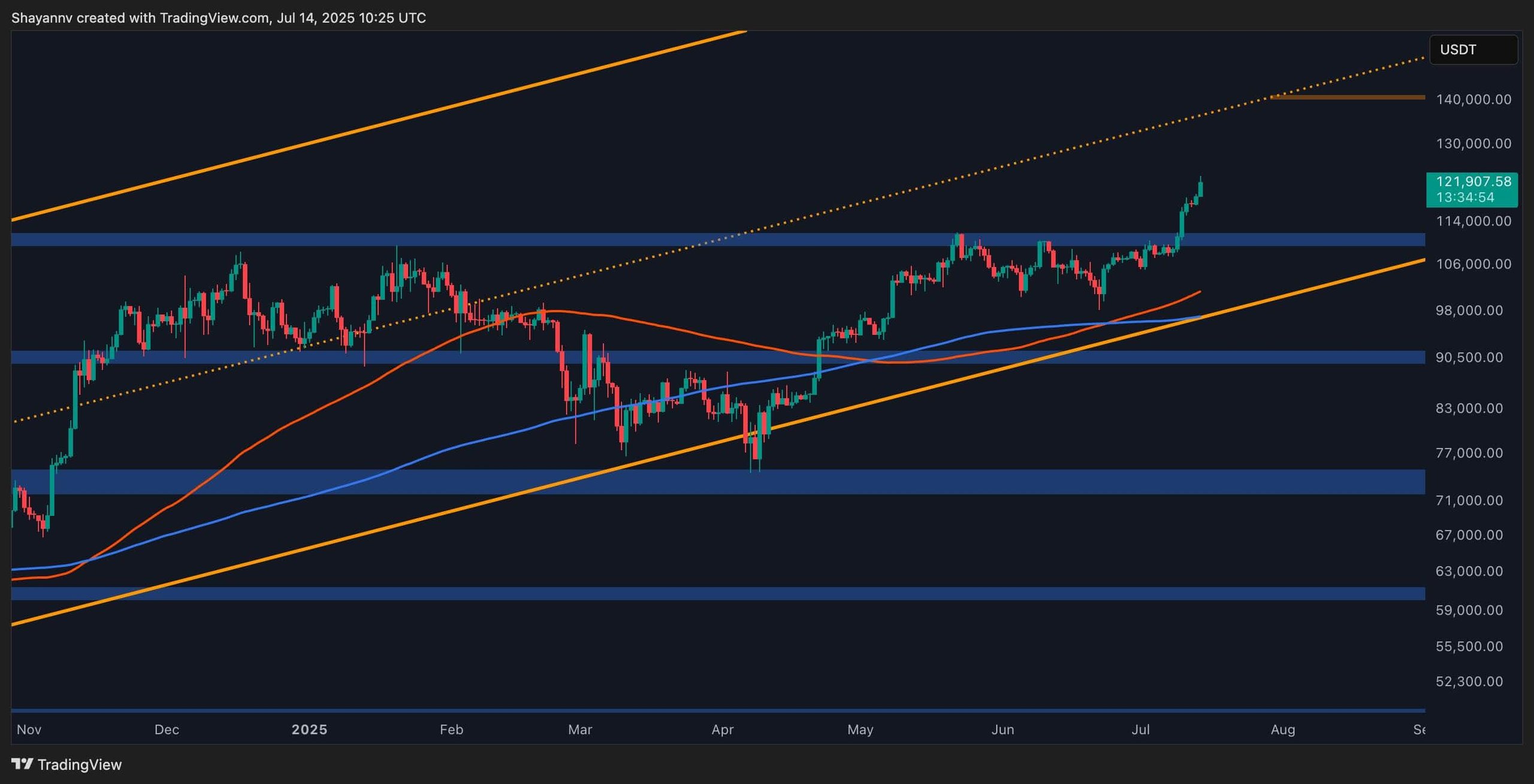 Bitcoin has officially entered price discovery once again, trading just below $122,000 at the time of writing. After months of consolidation and multiple failed breakout attempts, the bulls have finally regained full control.