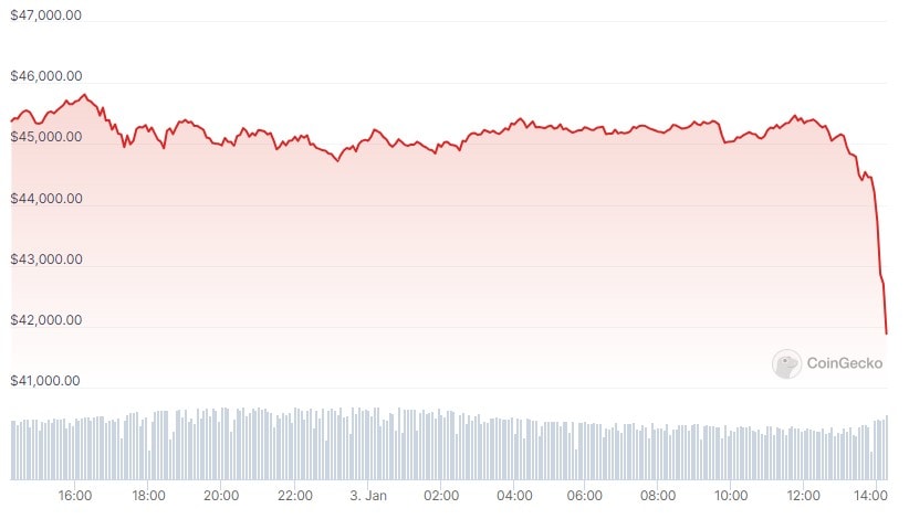 Bitcoin’s price took a sudden dive, and lost over $3,000 in the past few minutes.