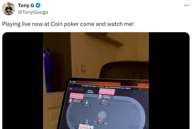 As mentioned when outlining the poker hand between 2 crypto whales, and while the perks of decentralization and the benefits of new-found freedom when interacting with an online casino have worked in CoinPoker’s favor, the major draw of this casino is also Tony G.