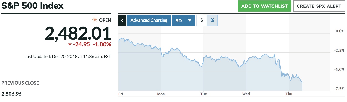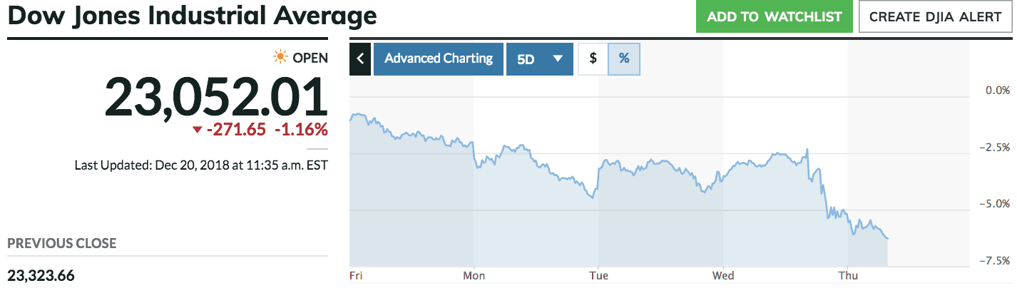 Interest rates rose by 2.5% yesterday, while the Dow Jones and S&P 500 dropped by about 5% each in the past five days leading up the interest rate hike.