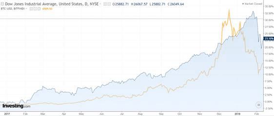 “Since investors have only one brain to process risk, they will make similar decisions about cryptocurrencies and stocks when they see price volatility in the latter,” – Datatrek Analyst.
