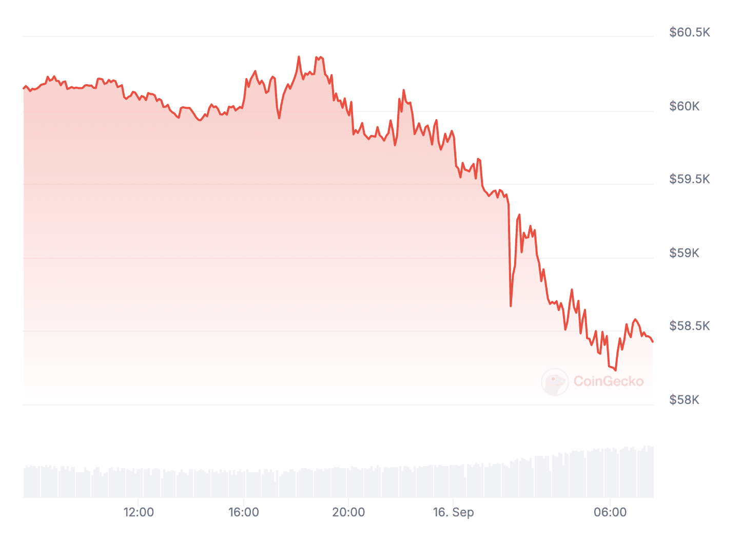 Crypto markets have reacted to the news. Bitcoin’s price is down to $58,400 at the time of this writing, declining by 2.8% in the last 24 hours.