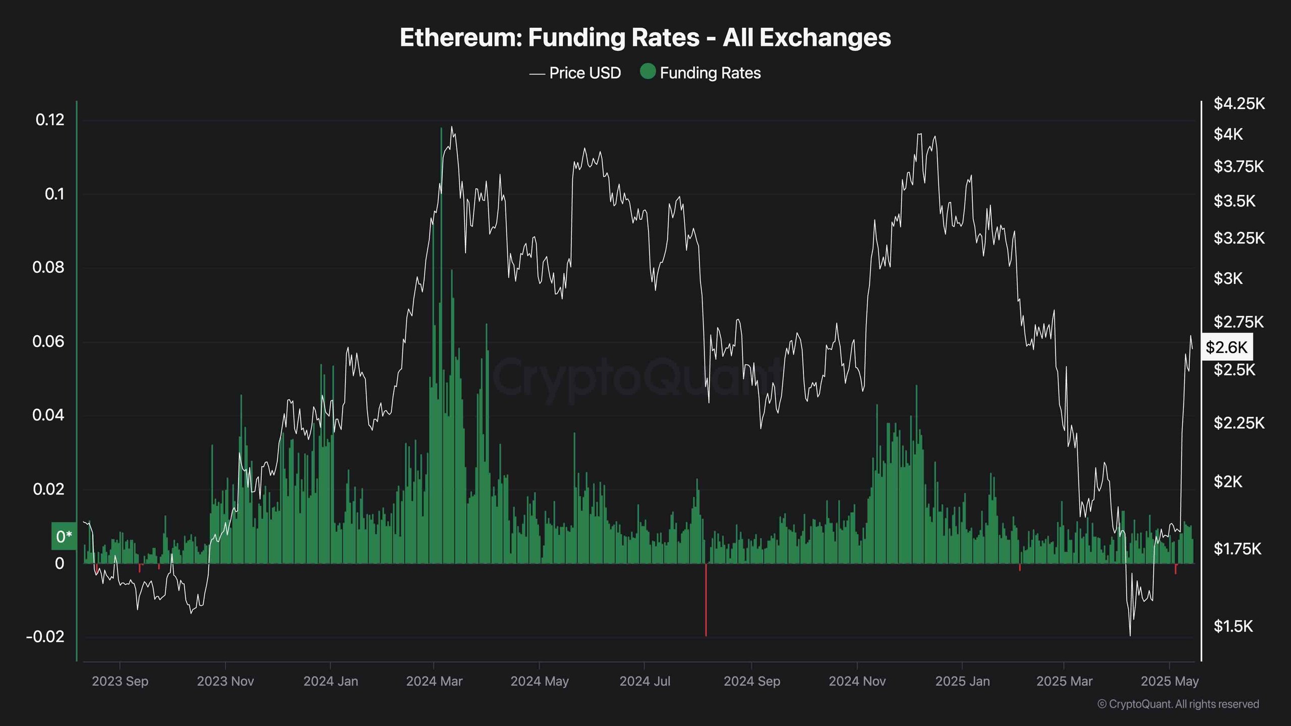 Funding rates across all major exchanges remain slightly positive, reflecting bullish market sentiment. However, they are not yet at extreme levels, indicating the rally may still have fuel left. Ethereum’s open interest has also climbed significantly alongside the price, suggesting new positions are entering the market rather than closing out shorts, typically a sign of genuine momentum.