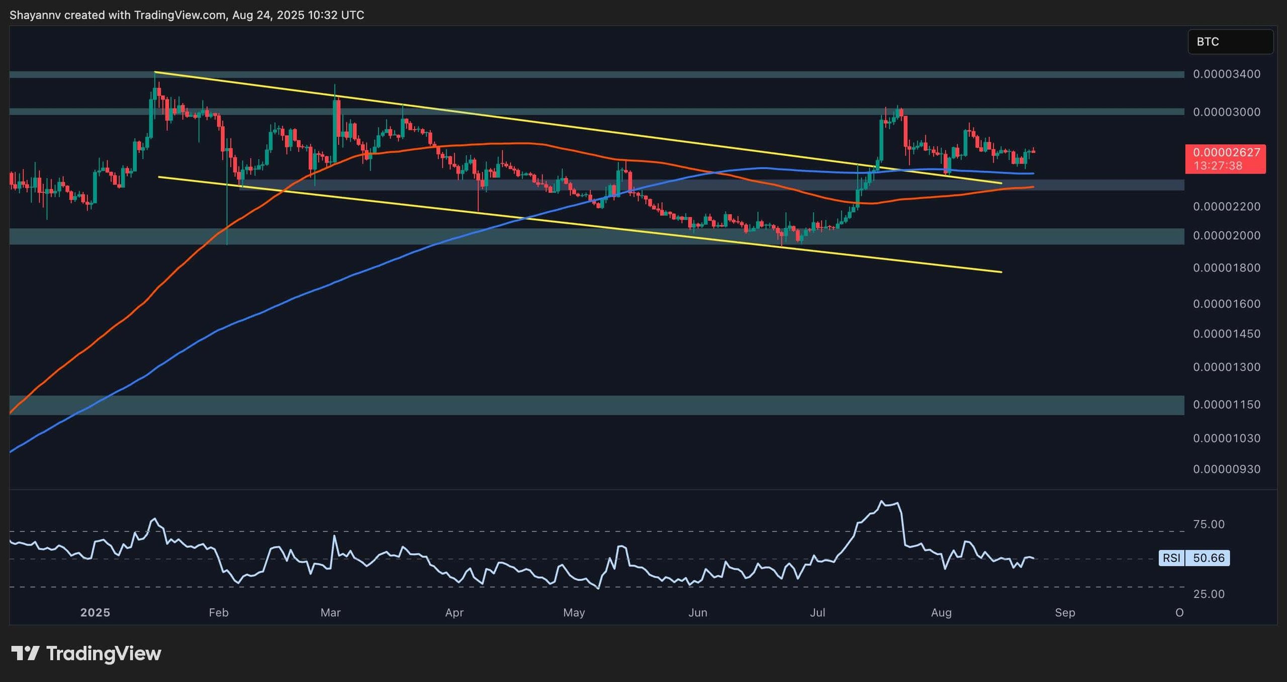 Still, with the asset holding above both moving averages and the critical 2,400 SAT support area, the outlook remains constructive. If momentum builds, a rally toward the 3,000 SAT level seems likely, with even a potential retest of the 3,400 SAT resistance zone on the table.