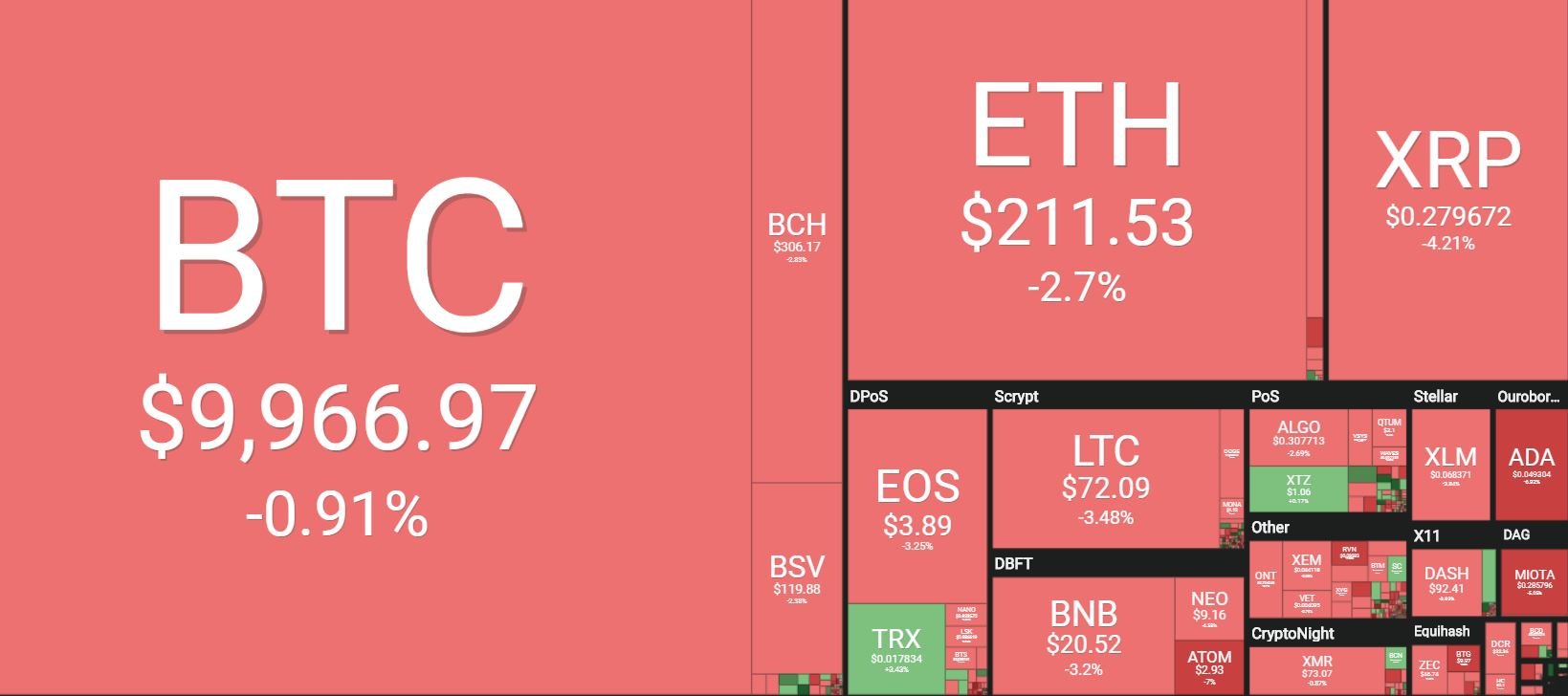 Tron (TRX) is the only cryptocurrency that is trading in the green among the top 20 projects. Its price has managed to gain around 2 percent in the past 24 hours. The recent increase comes after Justin Sun, Tron’s founder, announced new partners and an incentive plan.