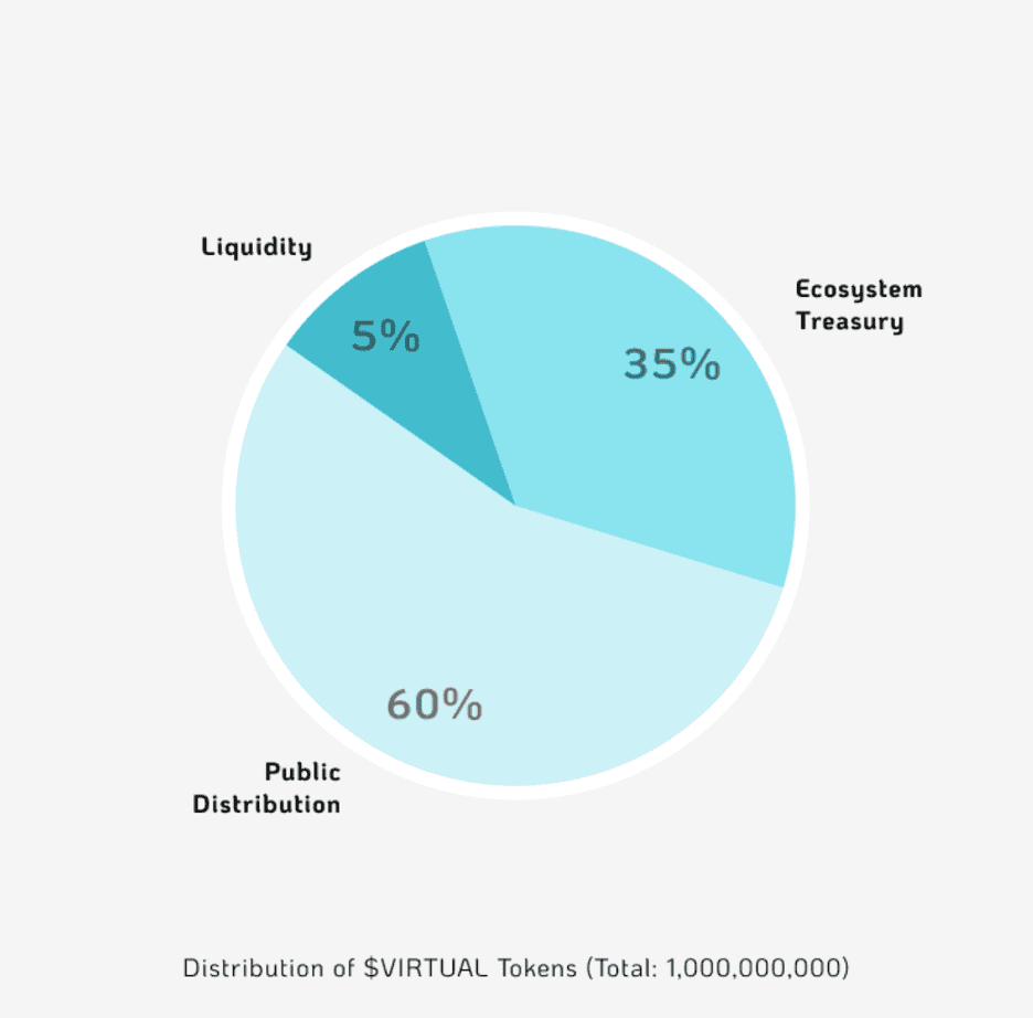 Ecosystem: 35% (350,000,000 tokens) is dedicated to the ecosystem treasury. This allocation is earmarked for community incentives and initiatives that drive growth within the VIRTUAL protocol ecosystem. This will sit in a DAO-controlled multi-sig wallet and will not have more than 10% emission per year for the next 3 years, subject to deployment only after receiving governance approval.