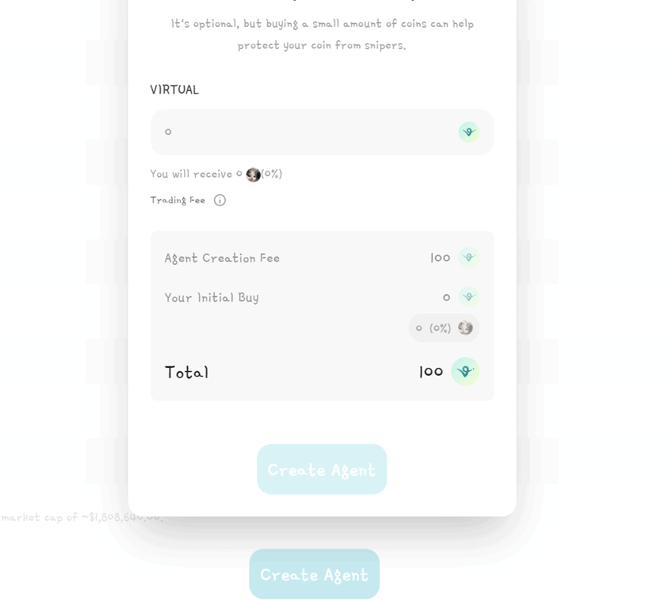 - Agent Creation: A fixed amount of VIRTUAL is required to create a new AI agent